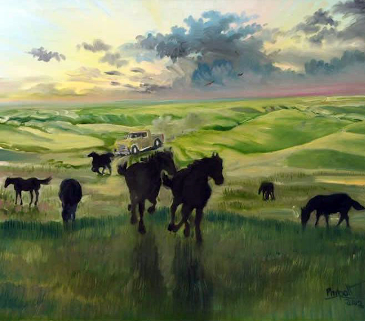 Philpott’s early exposure to galleries and exceptional western Canadian and American art and artists was mingled with traits of his father’s natural penchant for art. When infused with what Wallace Stegner called “being conditioned by climate and geography” it created an alchemy that eventually fermented and matured, resulting in the unique western artist and storyteller/ chronicler we see in Philpott today. …if there is a “western speech, a western character, a western culture” without a doubt it has shaped Philpott. And in its own quiet way, Philpott’s art, born of the west, has contributed to it. …In this exhibition, we celebrate 40 years of work by William Philpott and the contribution he has made to [the] art, culture, and history of the province of Saskatchewan.